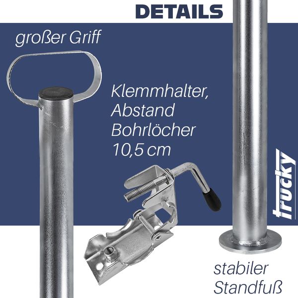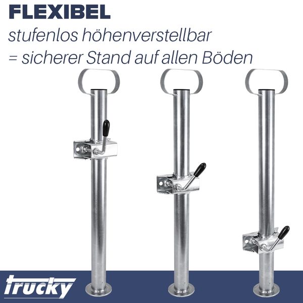 Trucky 2x Set Anhänger Stützen mit Klemmhalter Anhängerstützen 300 kg verzinkter Stahl 600 mm 60 cm höhenverstellbar 48 mm Abstellstützen