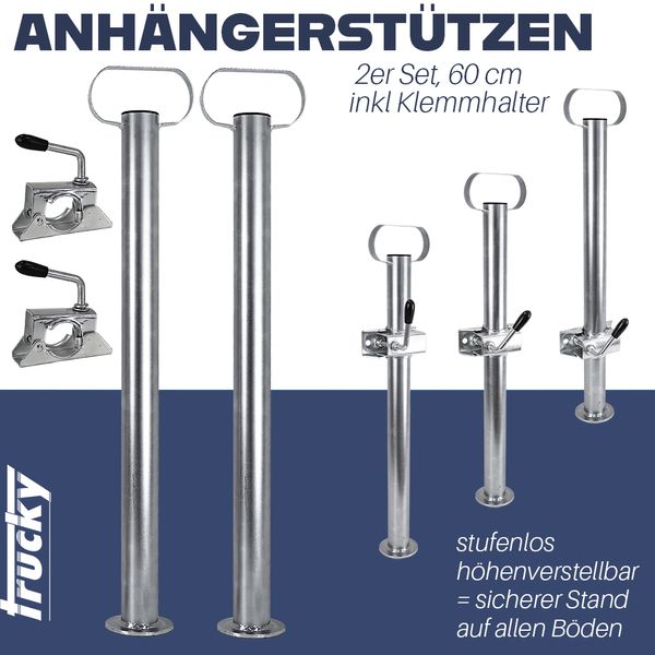 2 × Anhängerstützen (60 cm, Ø 4,8 cm) inkl. 2 × Klemmhalter