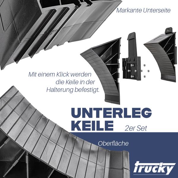 • Unterlegkeile-Set: Zwei rutschfeste HDPE-Kunststoffkeile mit Traglast bis 1.600 kg, inklusive Halterungen zur einfachen Befestigung am Anhänger für sicheren Halt, Material: HDPE-Kunststoff (schwarz), robust & langlebig