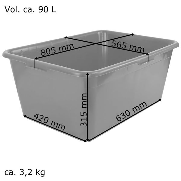 • IMMER PASSEND: Diese Wannen haben die Maße: ca. 68 x 46 x 31,5 cm (65 Liter) / ca. 80,5 x 56,5 x 31,5 cm (90 Liter) und sind ineinander stapelbar. Somit können diese platzsparend und effektiv verstaut werden